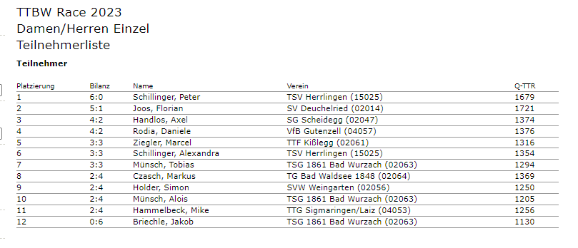 Am Freitag, den 20.01.2023 fand das erste TTBW Race Turnier 2023 in Haidgau statt. Die TT Race Turniere haben sich mittlerweile zu einer festen Größe im Sportjahr etabliert.