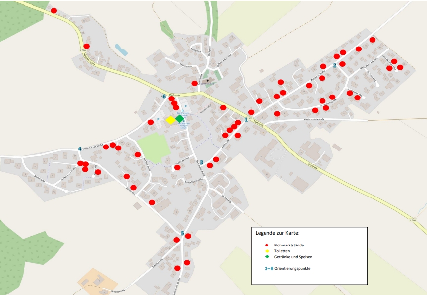 Dieser Lageplan wird auch am Tag der Veranstaltung an den Flohmarktständen als Flyer ausliegen.