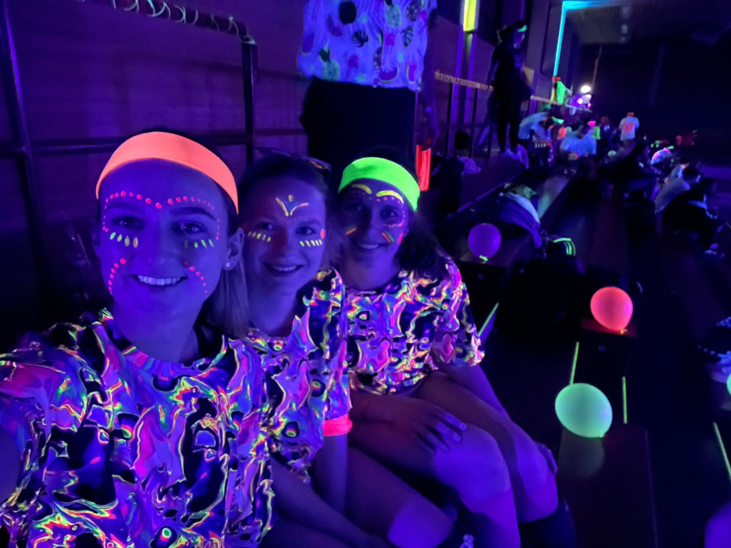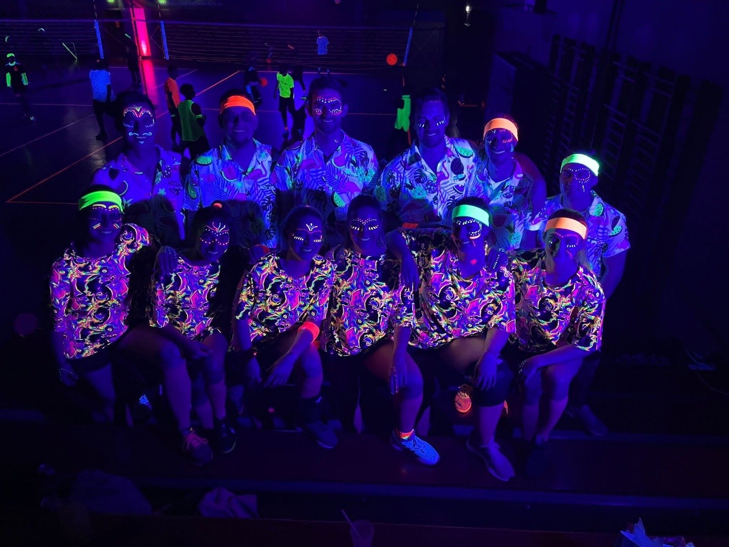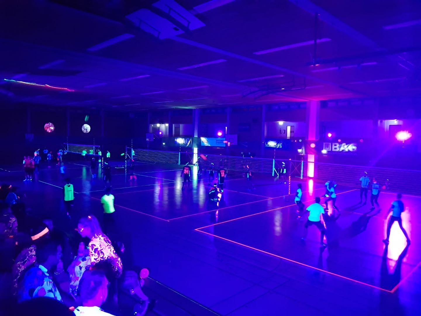 Für die insgesamt 24 Teams eine ganz neue Erfahrung während der Spiele nur die Leuchtfarben der Netze, Linien, Bälle und die großartigen Kostüme der Teilnehmer*innen zu sehen.