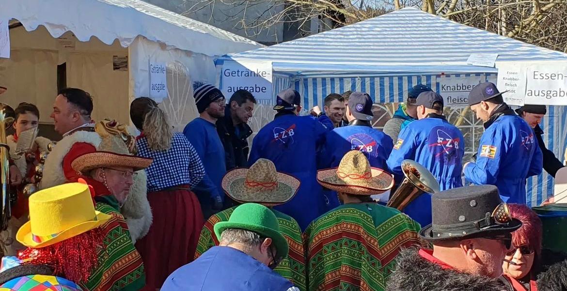 Bei schönstem Kaiserwetter durften wir über 2500 Hästräger und Musikanten in Haidgau willkommen heißen. Damit die hungrigen und durstigen Narren gestärkt in den Umzug gehen konnten, gab es an unserem Stand am Aufstellungsplatz Knabberfleisch und eine große Auswahl an Getränken.