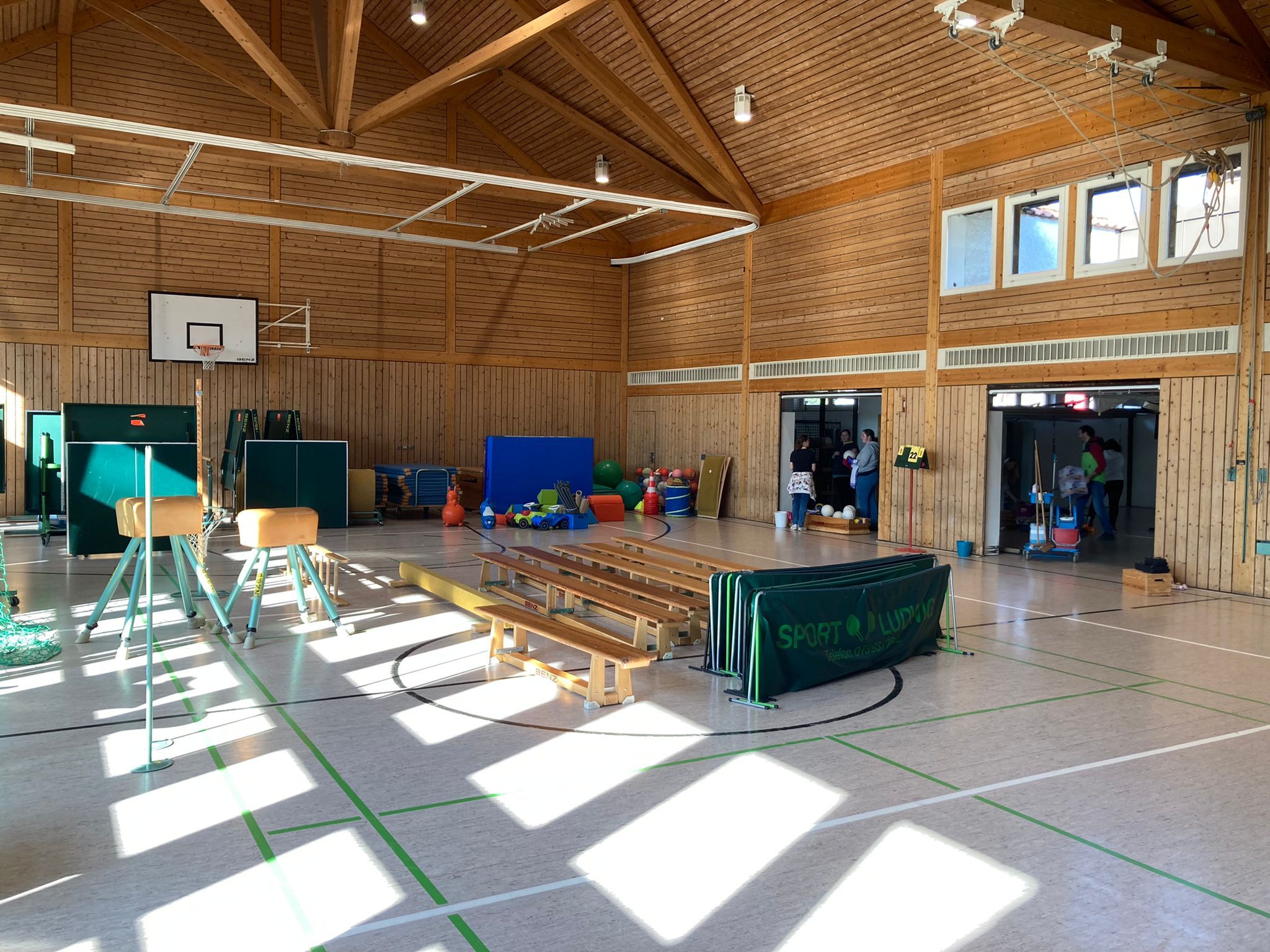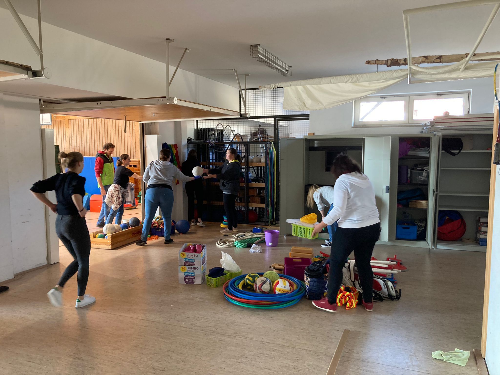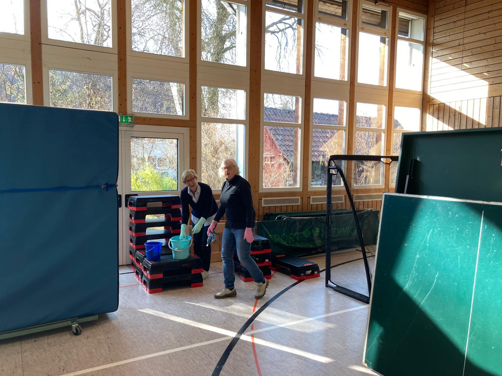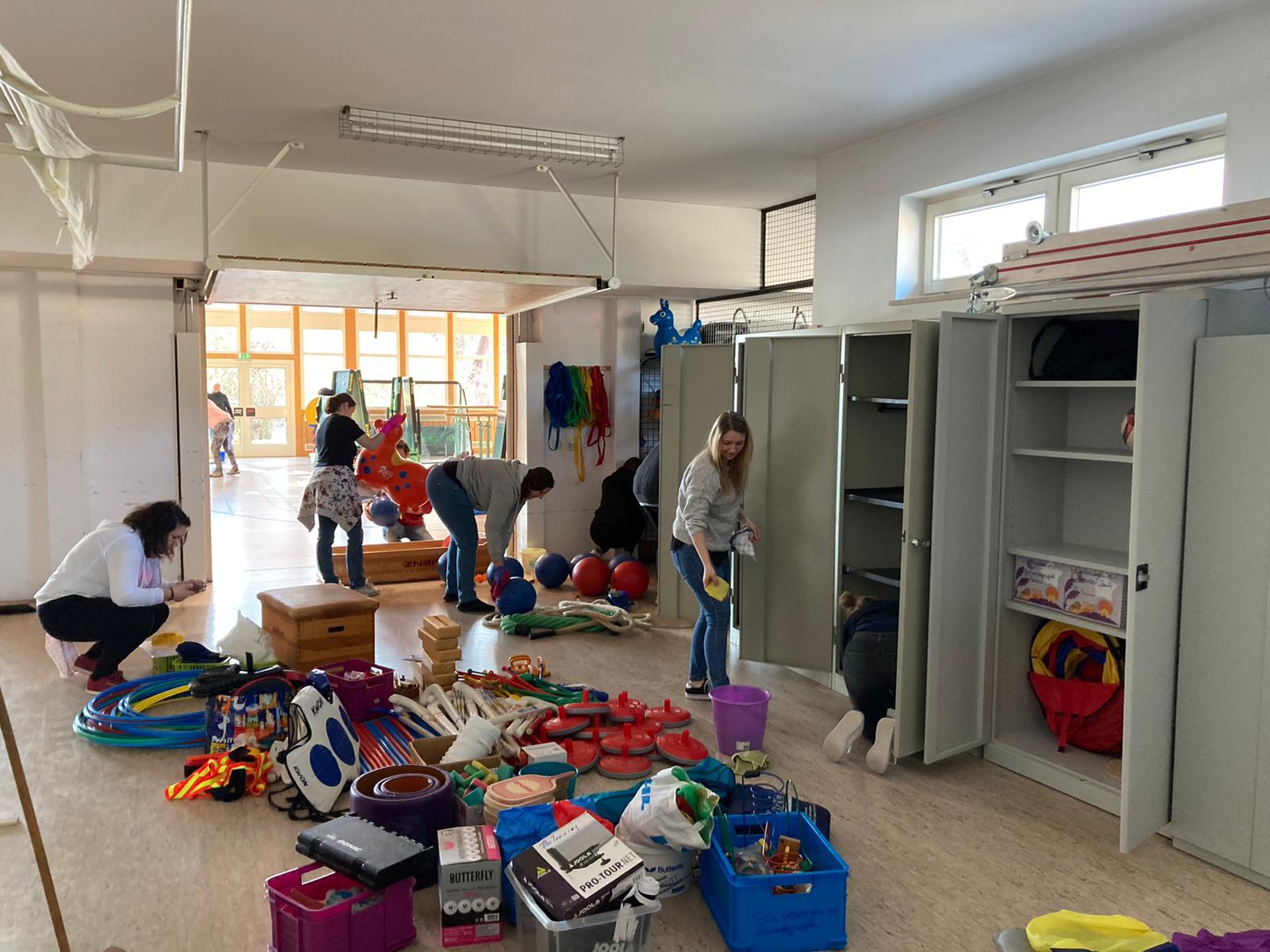 Die fleißigen SG-Helfer*innen räumten zunächst die Geräteräume aus, reinigten anschließend die Trainingsgeräte und sortierten danach alles wieder ordentlich ein.