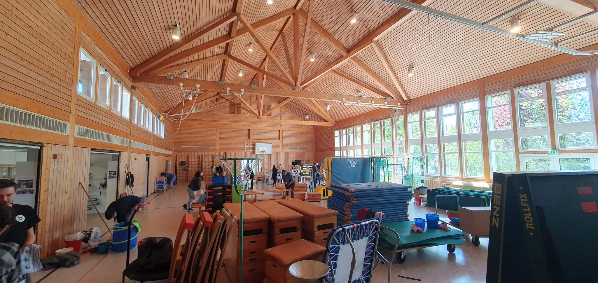Die fleißigen SG-Helfer*innen räumten zunächst die Geräteräume aus, reinigten anschließend die Trainingsgeräte und sortierten danach alles wieder ordentlich ein.