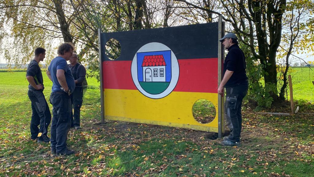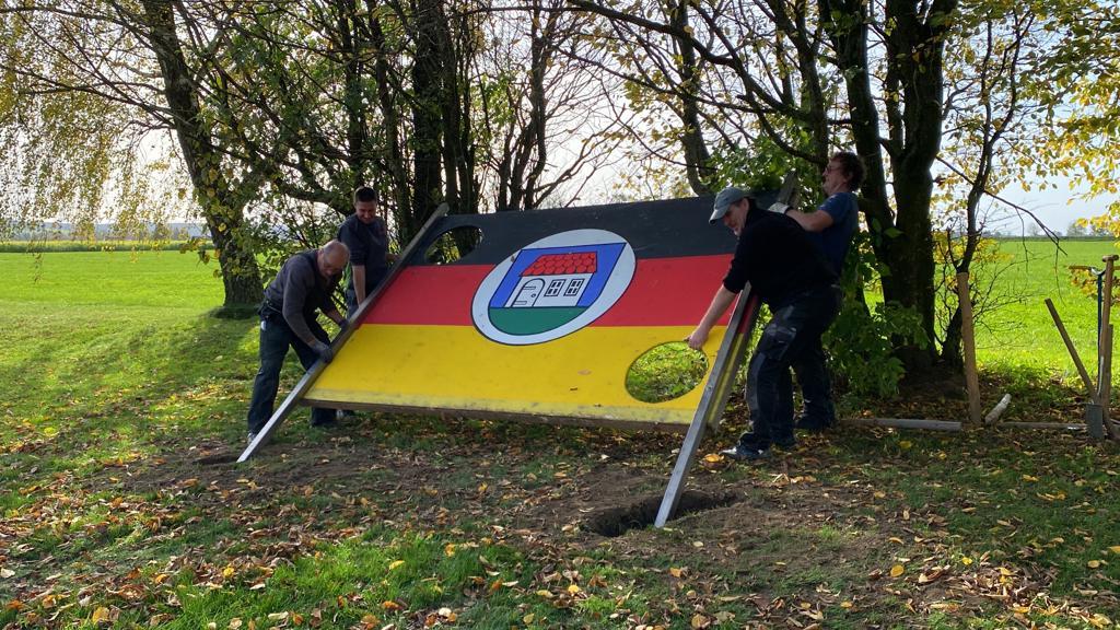 Außerdem wurde die Torwand, die im Jahr 2018 anlässlich des Musikfestes entstanden ist, auf einem speziell angefertigten Haltegestell montiert und anschließend einbetoniert.